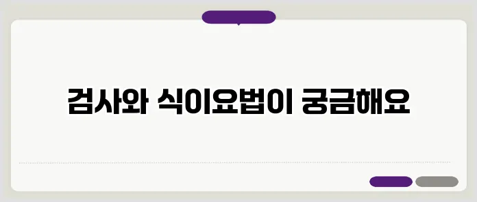 검사 전에 식이요법이 필수적입니다. 검사 전 1~3일 동안 저섬유질 식단을 유지해야 합니다. 주로 흰 빵, 쌀, 계란, 고기 등을 섭취하고, 과일이나 채소는 피하는 것이 좋습니다. 또한, 검사 전날에는 청결을 유지하기 위해 약물로 장을 비우는 것이 필요합니다. 이런 준비가 다소 번거롭게 느껴지실 수 있지만, 여러분의 건강을 지키기 위한 중요한 단계입니다.